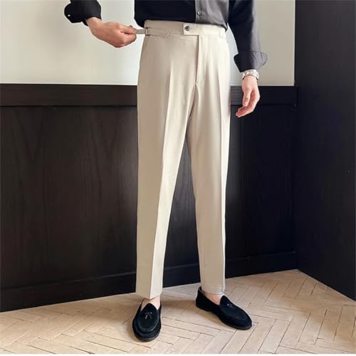 trending ! Men's High Waisted Straight Leg Trousers Casual Business Suit Pants British Style Gentleman Office Pants