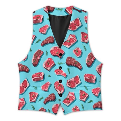 trending ! Meat Slices Pattern Print Men's Suit Vest Waistcoat Vests Formal Dress with 2 Pockets for Business Casual Tuxedo