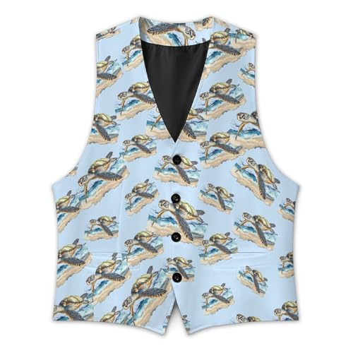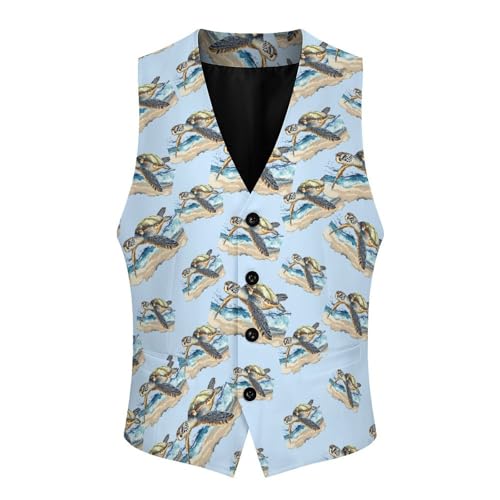 trending ! Sea Turtles Suit Vest for Men Slim Fit Tuxedo Waistcoat Button Down V Neck Business Dress Coat