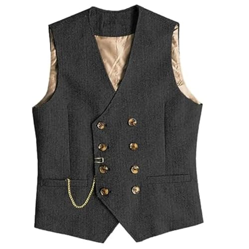 trending ! Mens Vintage Dress Vest for Men Double Breasted Blend Groomsmen Waistcoat For Wedding Banquet