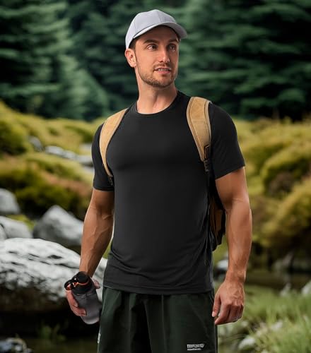 Fabric type: 92% Polyester, 8% SpandexCare instructions: Machine WashOrigin: ImportedClosure type: Pull OnQUICK-DRYING TECHNOLOGY: 92% quick-drying polyester + 8% elastic spandex blend accelerates sweat evaporation, making this mens undershirts dry twice as fast as pure cotton to eliminate stickinessSECOND-SKIN COMFORT: The micro-porous breathable structure and ultra-velvety, skin-friendly fabric ensure long-lasting comfort for men's undershirts, preventing heat buildup even for sensitive skinPERFECT FIT DESIGN: Precision stitching at the hem and 3D tailoring keep the men's T-shirt securely in place during movement, preventing ride-up or deformation for all-day supportWRINKLE-RESISTANT & DURABLE: Crafted with pre-shrunk technology, this crewneck undershirt retains shape and color through repeated washes. Machine washable, air-dry readyβno ironing needed. Stays crisp even in luggageVERSATILE FOR ALL OCCASIONS: This men's plain T-shirt seamlessly transitions from workouts to offices to lounging, adapting to all-day styling needs across multiple scenarios Perfect for everyday use. excellent materials and excellent craftsmanship ensure long-lasting durability.