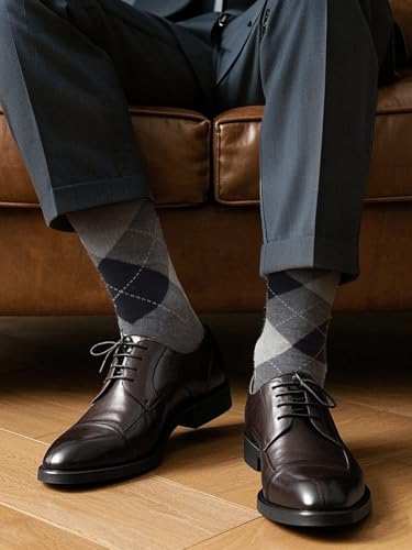 COTTON DAY Men's Premium silky Combed Cotton Trouser Dress Socks Seamless Toe Black Gray Blue Argyle Striped Shoe Size 8-12
