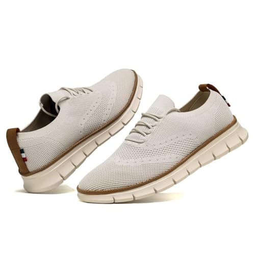 trending ! Mens Oxfords Lace-Up Lightweight Casual Shoes Fashion Sneakers Walking Shoes Dress Shoes Beige
