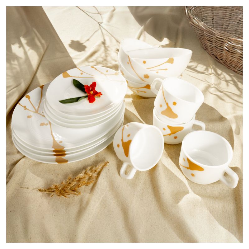 "Vajilla en Vitroceramica Luna Round Blanco Mostaza 16 Piezas"